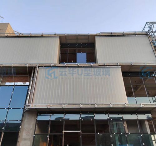 U玻幕墻為無鋼架龍骨結(jié)構(gòu),兩翼起到加強(qiáng)作用,強(qiáng)度超過同厚度普通平板玻璃的10倍以上,能夠自成墻體。